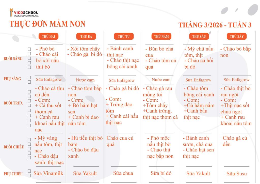 Thực đơn Trường Mầm Non