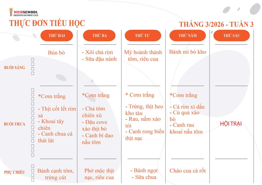 Thực đơn Trường Tiểu học