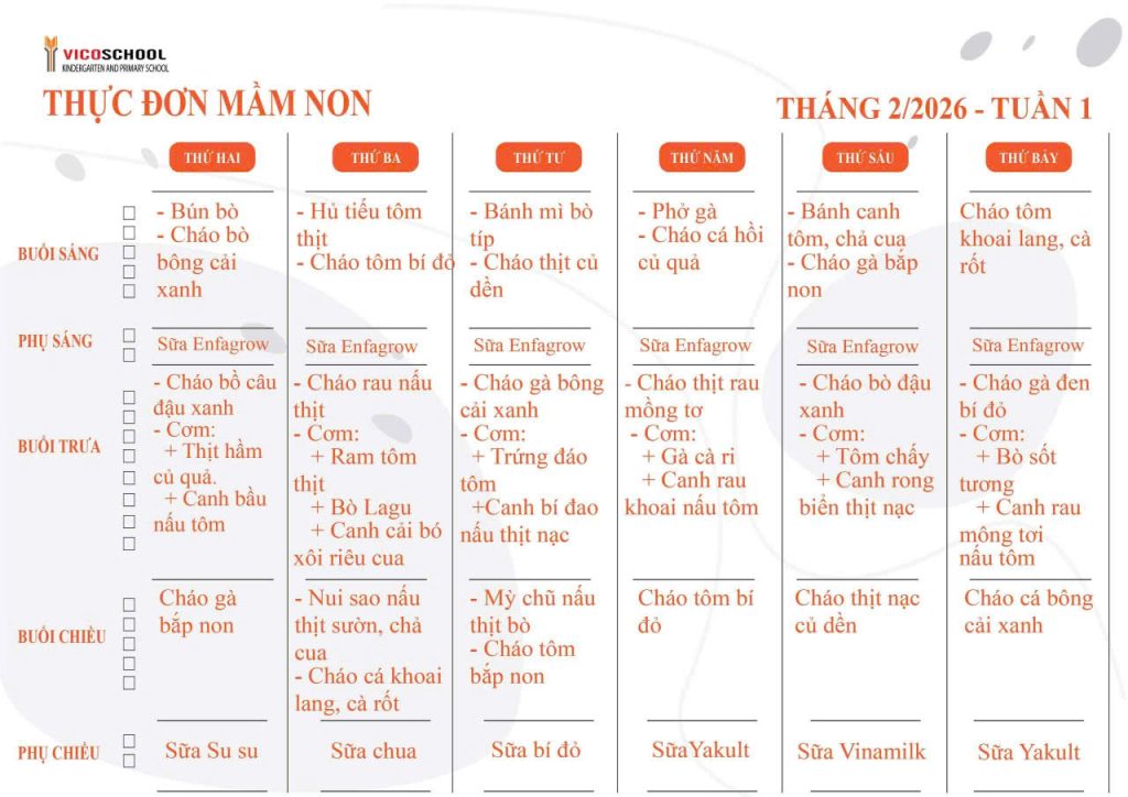 Thực đơn Trường Mầm Non