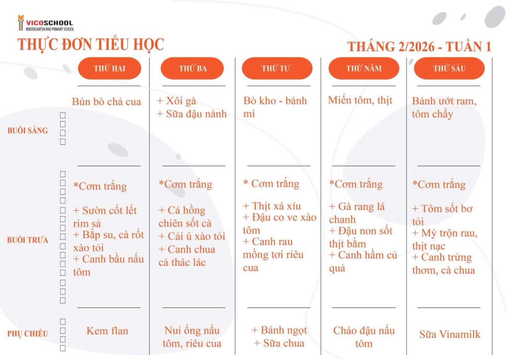 Thực đơn Trường Tiểu học